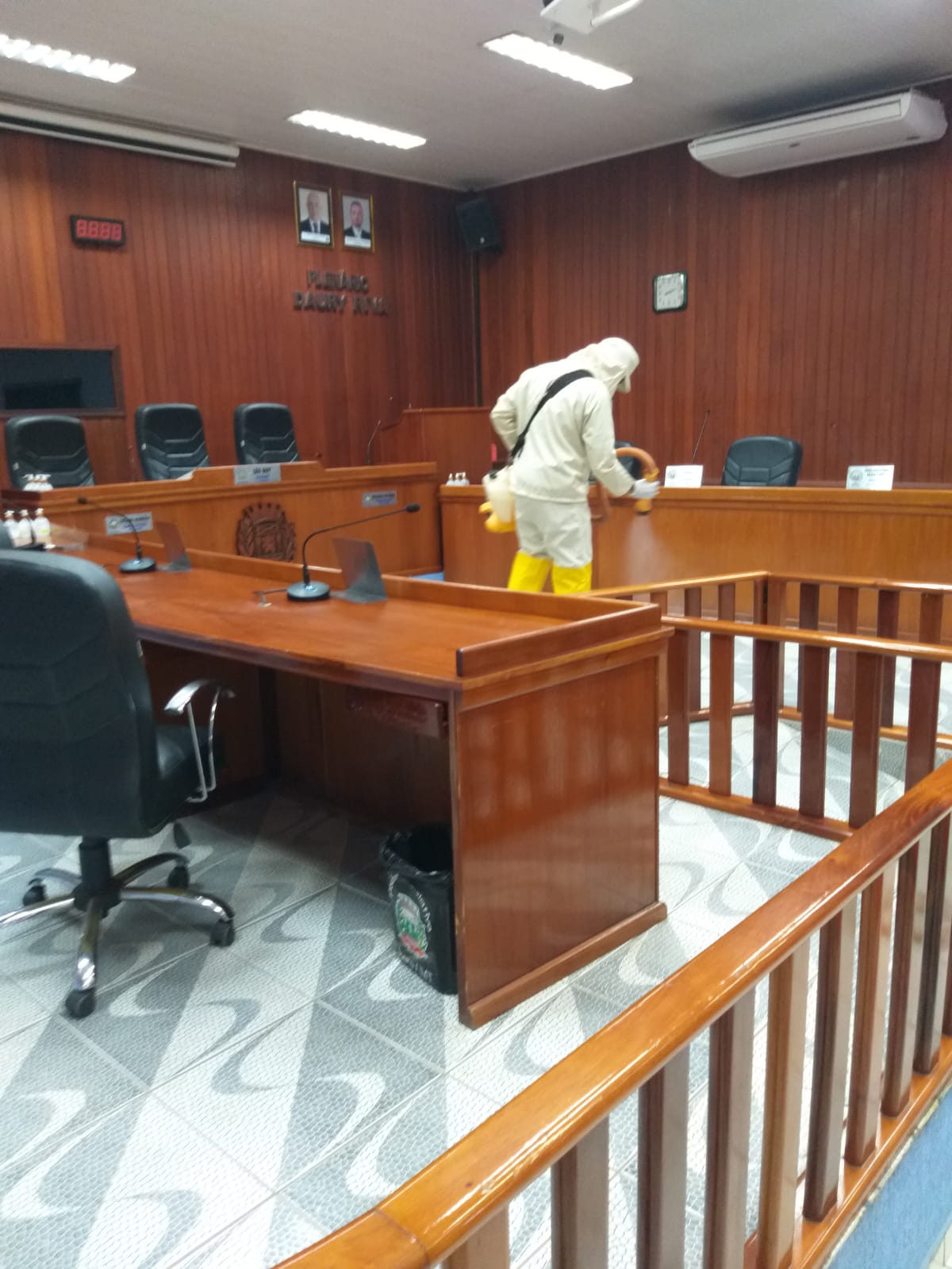 No último sábado, 12 de fevereiro de 2022, o prédio da Câmara Municipal de Juara passou por um procedimento de desinfecção. A medida se fez necessária no enfrentamento e combate a pandemia da Covid-19. Na ocasião, foram descontaminadas as áreas comuns e administrativas, bem como gabinetes e plenário da Casa Legislativa.
