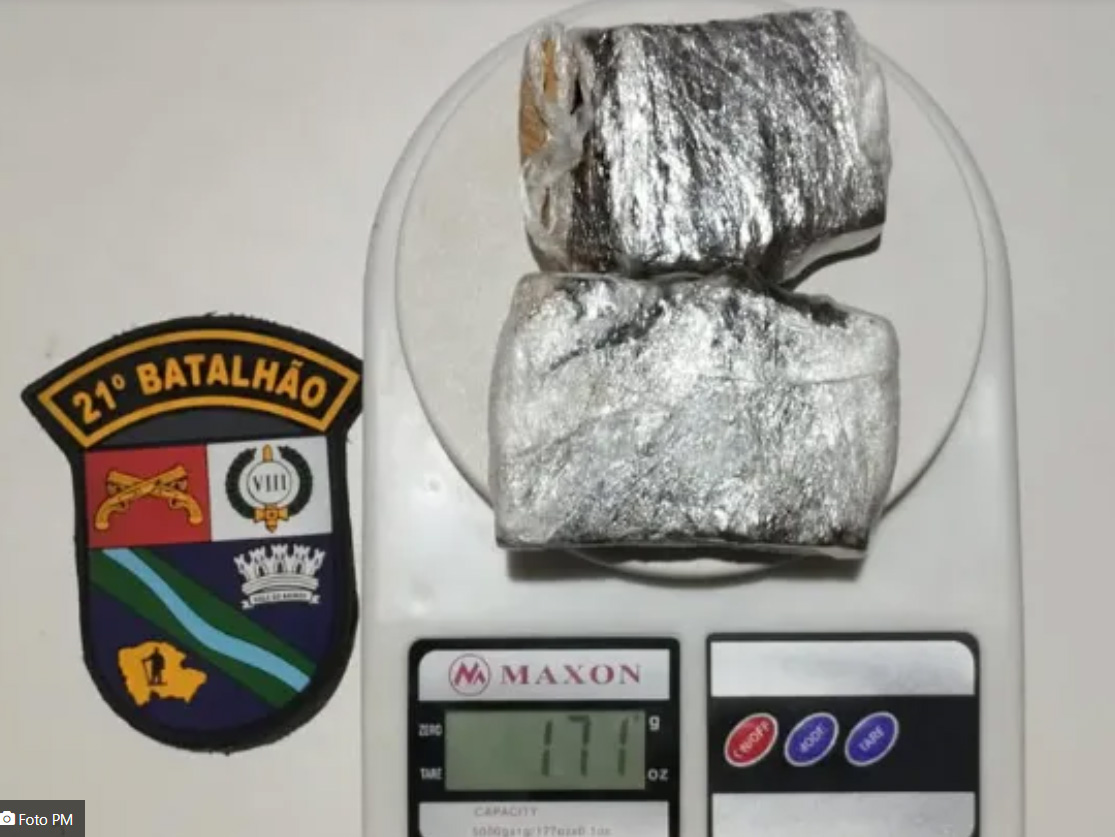 Ao ser indagado o suspeito confessou ser portador da droga e recebeu voz de prisão pelo crime de tráfico ilícito de drogas, no município, uma vez que o produto totalizou aproximadamente 171 gramas.