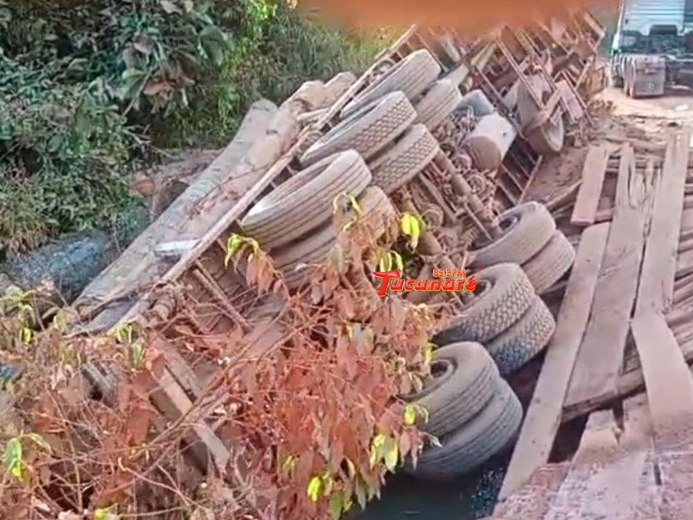 Um grave incidente registrado nesta segunda-feira (04) interditou completamente a estrada vicinal entre a Fazenda Macuxi e à Fazenda Karu, no trecho que fica entre as rodovias MT-220 e MT-160, em Juara (MT). Segundo vídeos e relatos recebidos pela reportagem da Rádio Tucunaré e site Acesse Notícias, uma ponte de madeira cedeu, provocando a queda de um caminhão no leito do rio. Não há, até o momento, informações oficiais sobre supostos feridos.