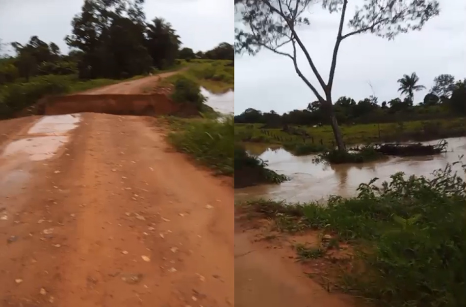 O volume elevado de água provocou o rompimento do aterro do córrego marginal, resultando na interdição total do trecho que liga a região do Pé de Galinha ao Seringal, além de bloquear o acesso à localidade de Águas Claras.