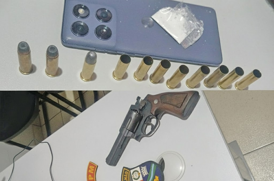 A detenção do acusado aconteceu nas imediações da Praça dos Colonizadores, área central da cidade, e com ele foi apreendido um revólver calibre 38 da marca Rossi, com 06 munições deflagradas, e além disso foi encontrado um invólucro com substância análoga à cocaína e munições.