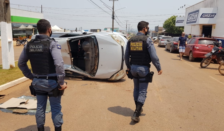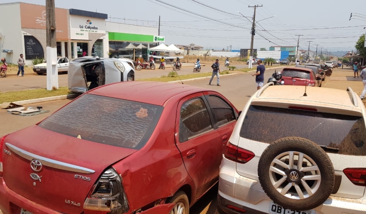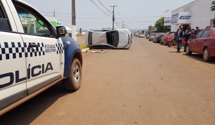 Conforme os policiais o veículo Ford Fiesta de cor prata que estava sendo conduzido por C.R.S.P, de 51 anos, acabou sendo o autor do acidente, e que o mesmo relatou que estava descendo a Avenida e do nada o veículo Fiesta veio a se chocar em dois veículos que estavam estacionados ao lado da via e tombou.